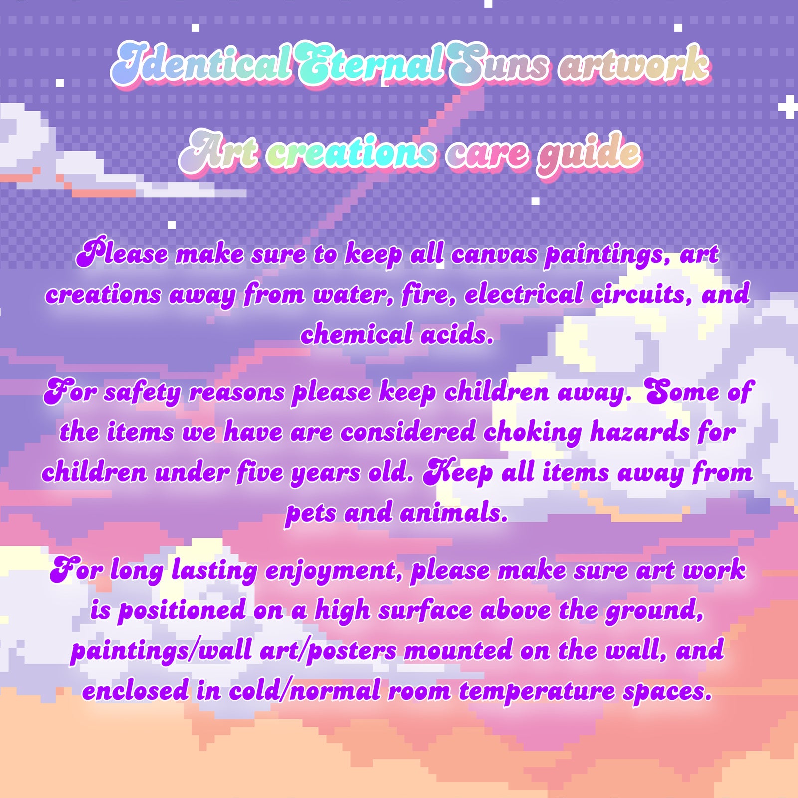 Please make sure when unwrapping the packaging to be very gentle. Some art pieces are very delicate. Make sure to place your art piece is in a safe place and secure where it wont get damaged.