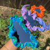 Since these mirrors are made of clay, each fairy pocket mirror has a unique shape, size, length, and weight. Additionally, each mirror is coated and protected with UV epoxy resin.